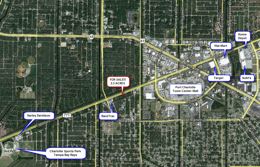 • 2.3 Acres El Jobean Rd Port Charlotte High traffic location of 25,062 AADT.